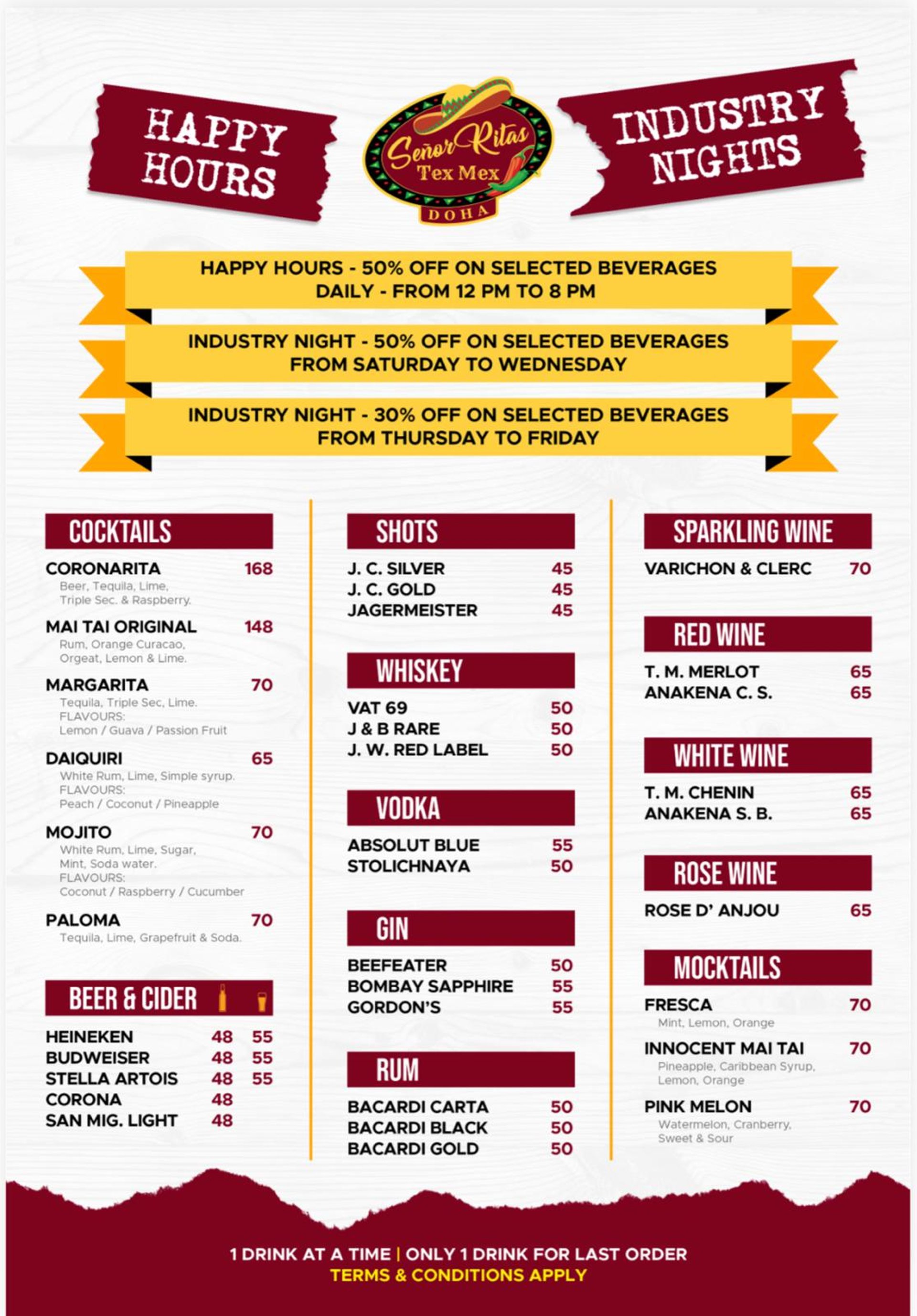 HAPPY HOUR /INDUSTRY NIGHT DISCOUNT ON SELECTED MENU ONLY